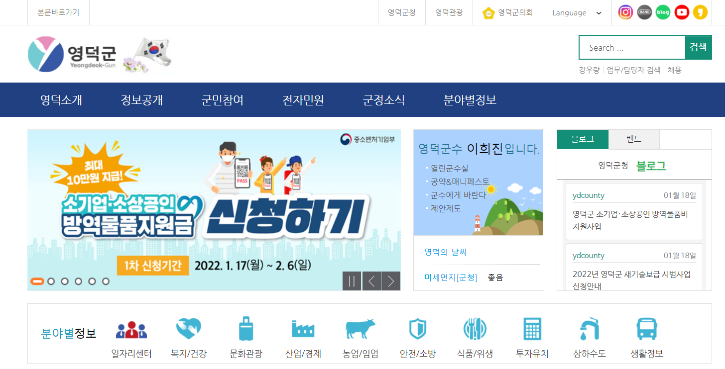 영덕군청 홈페이지 주요 기능