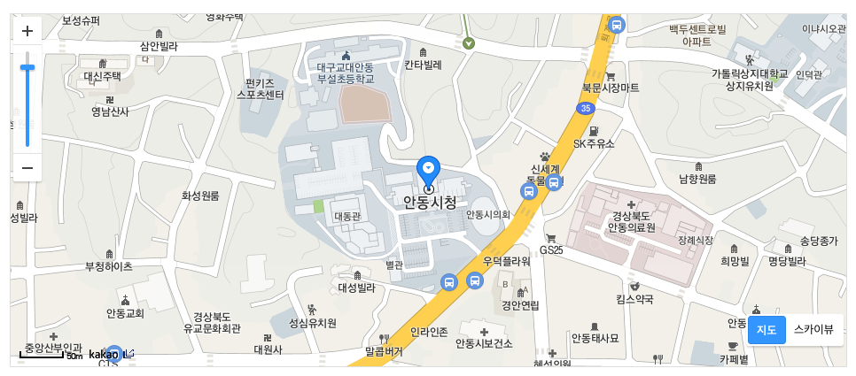 청사안내 메뉴를 통해 안동시청 청사의 위치 및 조직도를 확인할 수 있습니다. 안동시청은 명륜동에 위치해 있으며, 주소는 경상북도 안동시 퇴계로 115, 대표전화번호는 054-840-6114 입니다.