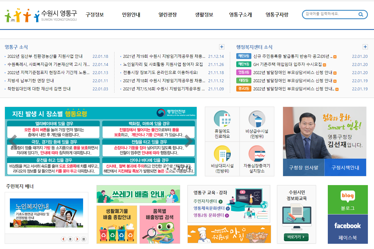 영통구청 홈페이지 주요 기능