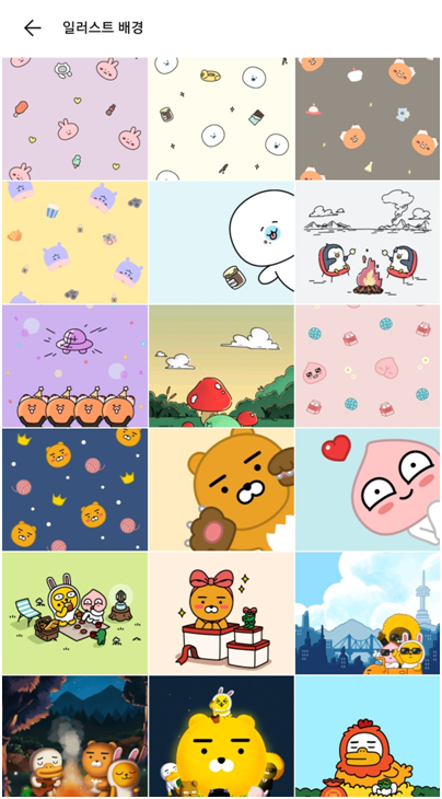 이상으로 카톡 글자크기 변경방법에 대해 간단히 알아보았습니다. 진행 과정에서 이미 확인하셨겠지만, 화면 메뉴를 통해 글자크기 뿐 아니라 카톡 배경화면(색상) 및 화면 방향에 대한 설정도 가능합니다. 색상의 경우 색상에 대한 컬러를 바꿀 수도 있고, 카톡내에 등록되어 있는 다양한 일러스트 또는 자신의 앨범에 저장되어 있는 사진을 배경화면으로 바꿀 수 있습니다.