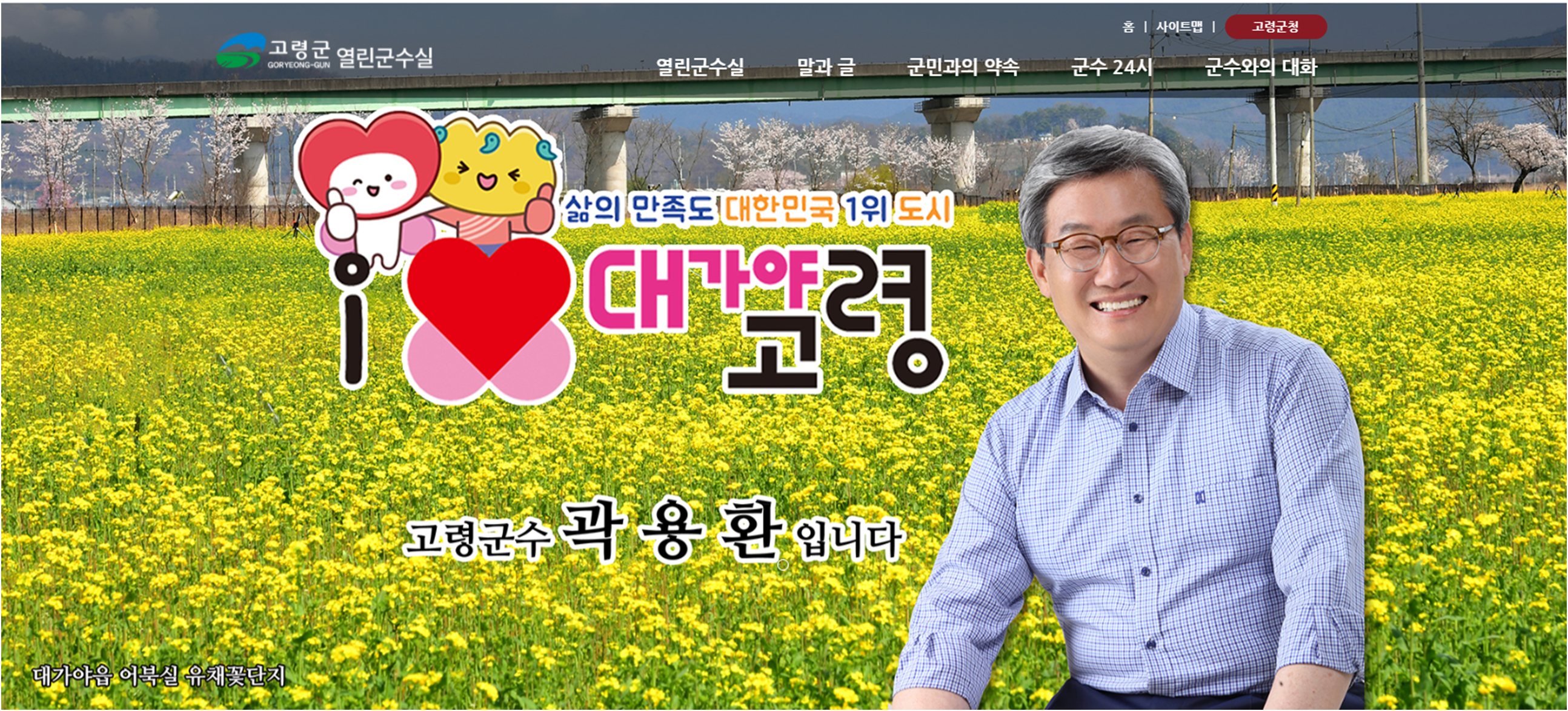 군수님과 직접적으로 소통할 수 있는 공간입니다. 군민과의 약속 메뉴를 통해 주요 공약을 알 수 있으며, 군수24시 메뉴를 통해 군수님의 주요 일정 및 성과를 확인할 수 있습니다.