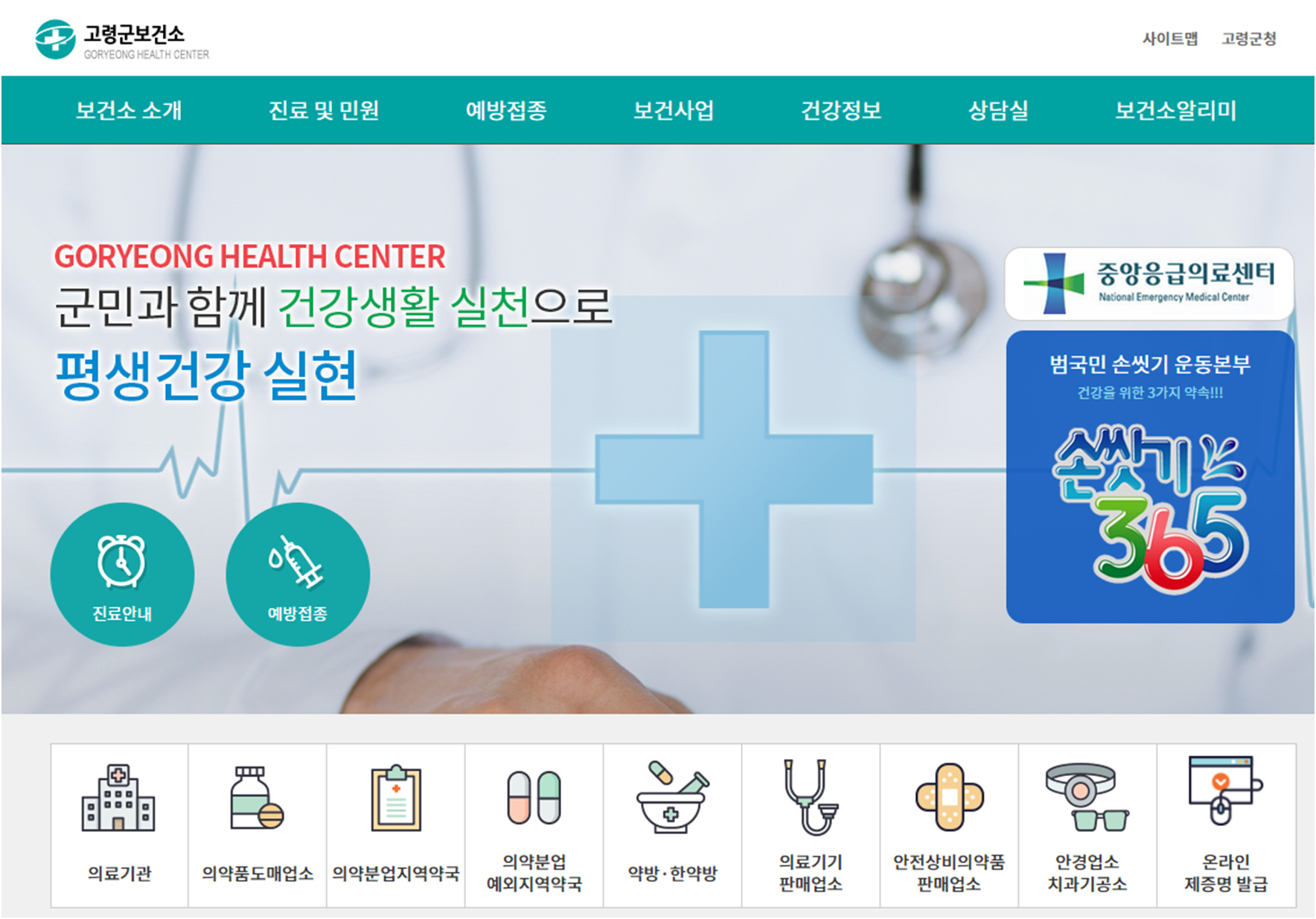 고령군 보건소 메뉴를 통해 다양한 보건서비스를 이용할 수 있습니다. 대표적으로 보건소의 진료 및 예방주사 접종 등을 예약할 수 있으며, 보건소에 대한 민원을 제기할 수 있습니다.