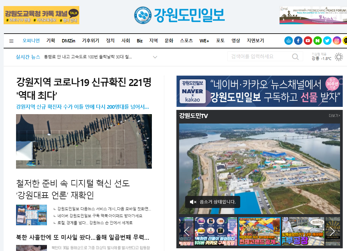 강원도민일보 홈페이지 모습은 위와 같습니다. 본 페이지를 통해 강원도민일보에서 제공하는 다양한 컨텐츠를 확인할 수 있습니다.