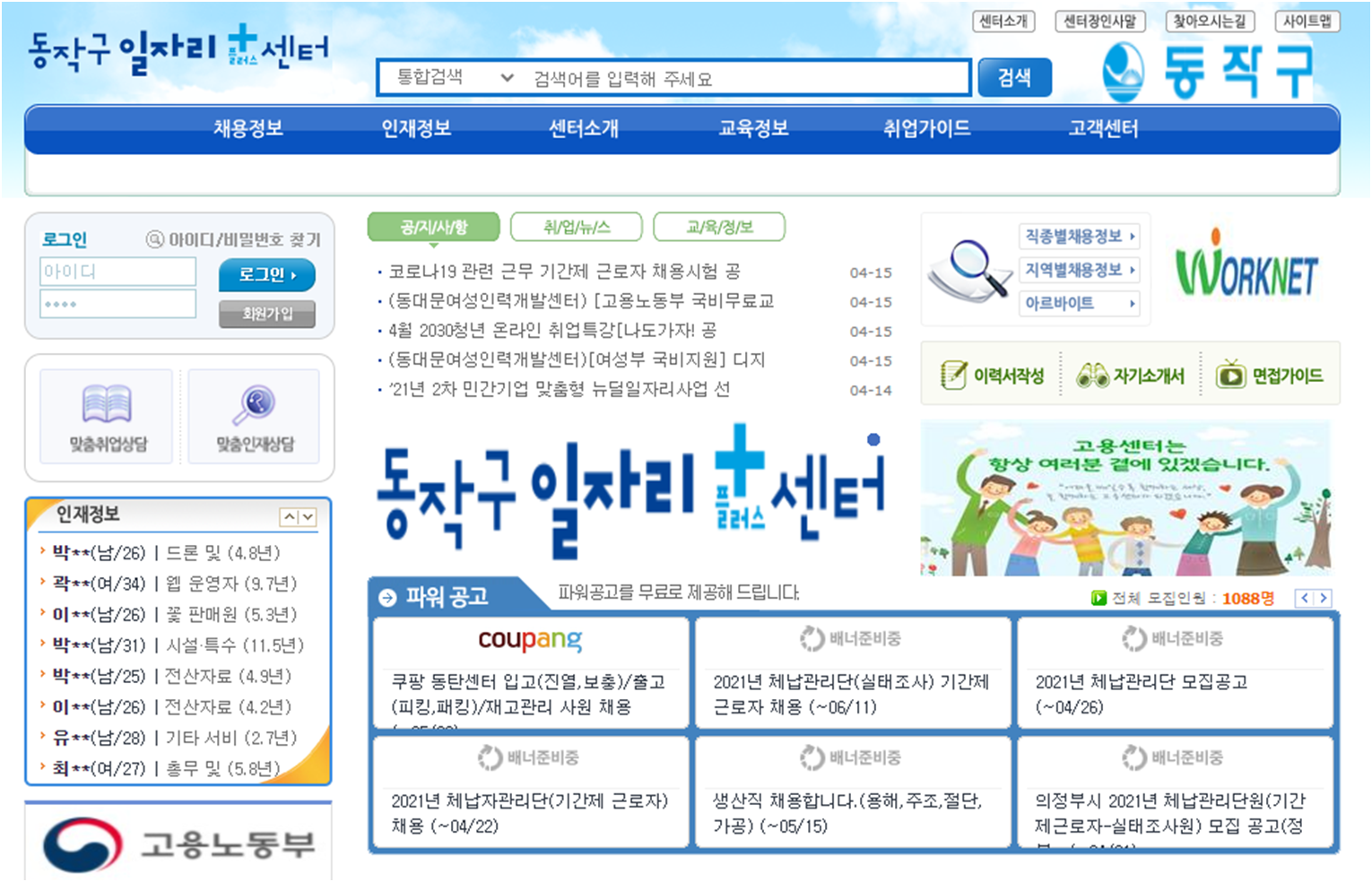 동작구는 고용률을 개선하고 지역경제를 활성화하기 위해 동작구일자리플러스센터라는 이름의 일자리지원센터를 운영하고 있습니다. 동작구일자리플러스센터를 통해 각종 구인구직 포스팅을 확인할 수 있으며, 각종 취업정보를 제공받을 수 있습니다.