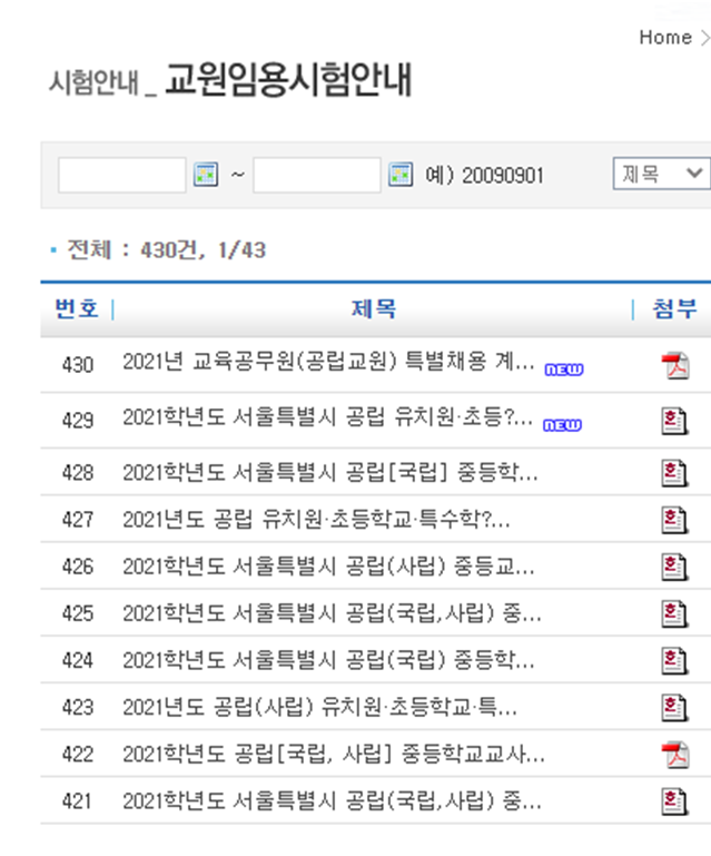 교원임용시험과 지방공무원시험 게시판의 경우 각 포지션에 따른 채용계획공고가 이 곳에서 올라오기 때문에 임용을 준비하는 분이라면 주기적으로 확인이 필요합니다.